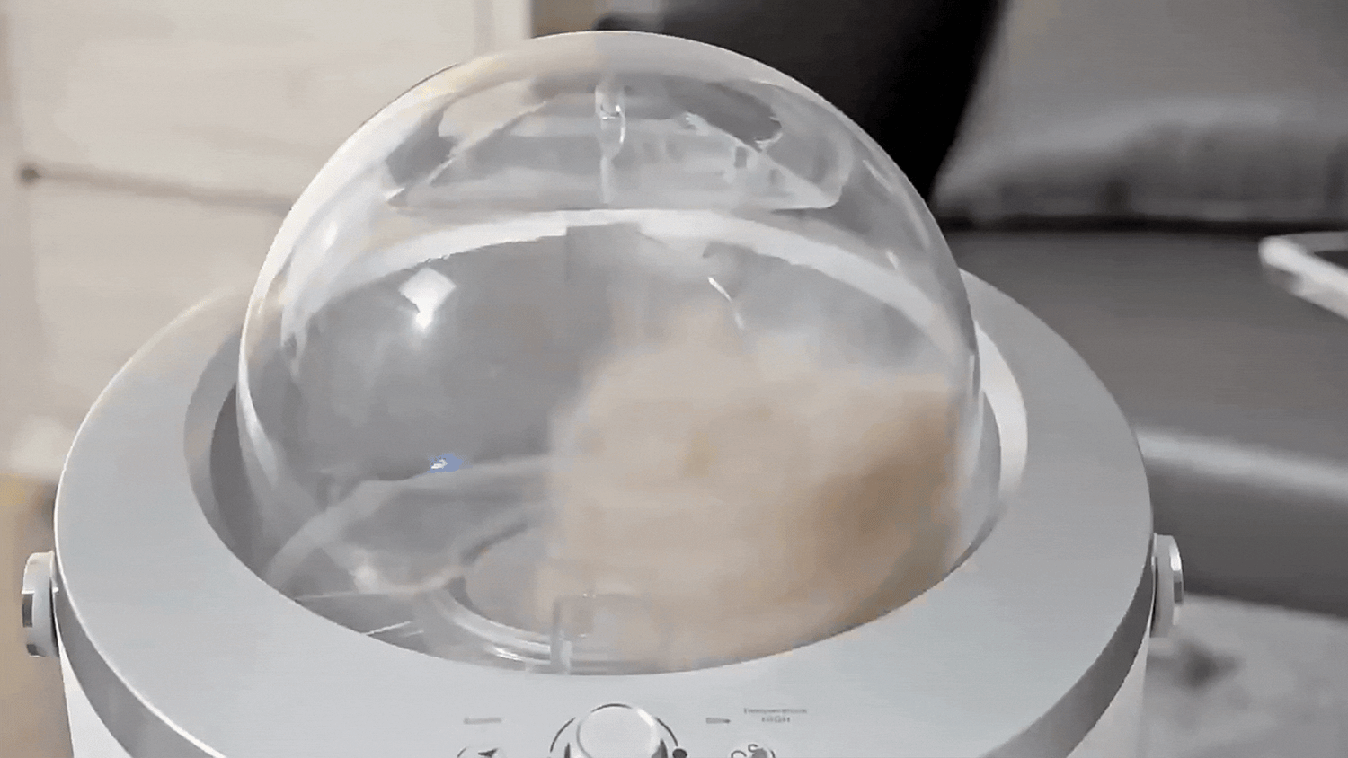 De Aquapuff Pro Max heeft een verstelbare blaaskracht met een geluidsniveau op laagste stand van 59 decibel (relatief stil) tot 90 decibel.